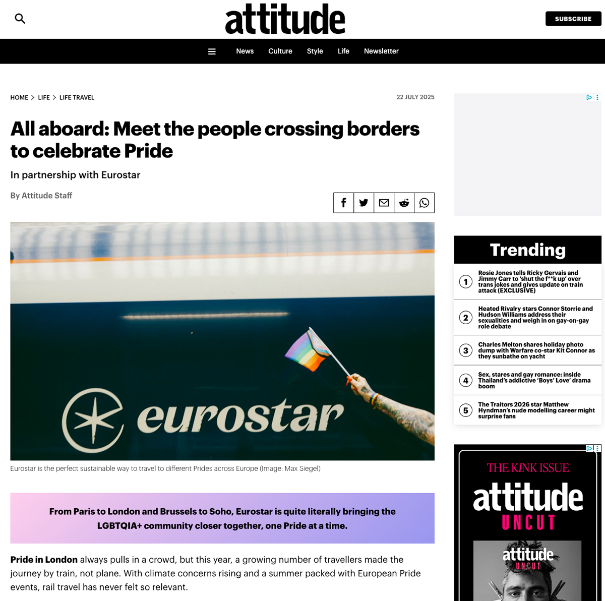 Eurostar asked Good Taste Studios to capture brand-led content around LGBTQ+ Pride, celebrating community and visibility through travel and culture.